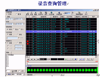 - 可按日期、時(shí)間、電話號(hào)碼、線路、人員等條件進(jìn)行查詢放音;支持語(yǔ)音卡放音、聲卡放音等。