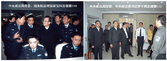2003年公安部長周永康視察鄭州公安局時(shí),對(duì)鄭州市公安局在綜合應(yīng)急通信指揮系統(tǒng)平臺(tái)的技術(shù)和業(yè)務(wù)模式的創(chuàng)新,進(jìn)一步提高了鄭州公安部門對(duì)突發(fā)事件綜合、快速、準(zhǔn)確的處置能力表示滿意;而后中央政治局常委、國務(wù)院總理溫家寶同志,中央政治局常委、中央政法委書記羅干同志、國務(wù)院秘書長華建敏同志均視察了鄭州市公安局,并對(duì)其"三臺(tái)合一"給予了充分肯定。