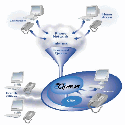 完整的eQueue解決方案包括一系列模塊化設(shè)計(jì)的功能組件,它們是:支持各種媒體類型的自動(dòng)呼叫分配ACD;具有完整交換功能的PBX;基于Java技術(shù)、Web瀏覽器的Email/Chat;支持人工和自動(dòng)兩種工作方式的Recording;智能化的交互式語音應(yīng)答系統(tǒng)IVR;集成了上千種標(biāo)準(zhǔn)格式、支持客戶任意自定義模板的Reporting;跨越所有媒體類型的、統(tǒng)一信息傳遞Messaging;幫助聯(lián)絡(luò)中心降低經(jīng)營管理成本、提高座席員勞動(dòng)效率的WorkForce;擁有呼叫過程智能分析能力的預(yù)撥號系統(tǒng)Outbound Dialer;開放的、支持當(dāng)前及未來通訊協(xié)議的、標(biāo)準(zhǔn)化的接口Interfaces以及面向未來技術(shù)發(fā)展及應(yīng)用的VOIP。