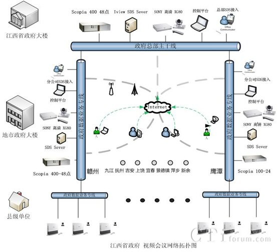 江西省政務信息網(wǎng)縱向網(wǎng)市縣聯(lián)網(wǎng)工程,在省市聯(lián)網(wǎng)工程的基礎上,把省、設區(qū)市兩級網(wǎng)絡延伸到縣(區(qū)),實現(xiàn)省、設區(qū)市、縣(區(qū))三級聯(lián)網(wǎng)。會議電視系統(tǒng)要實現(xiàn)省、設區(qū)市、縣(區(qū))三級聯(lián)網(wǎng),省領導通過會議電視系統(tǒng)召開省、設區(qū)市、縣(區(qū))三級會議,各設區(qū)市領導也可以通過會議電視系統(tǒng)召開設區(qū)市、縣(區(qū))兩級會議。并能同時實現(xiàn)多個多點會議電視的召開。整個系統(tǒng)能實時地采集和顯示數(shù)據(jù)、圖像、聲音資料等,供會議電視系統(tǒng)和決策支持系統(tǒng)使用。還具有召開多點研討會、評審會、技術培訓和遠程教育等功能。視頻會議工程將建設12個設區(qū)市會議電視管理中心和112個分會場(全省112個縣、區(qū)),共124個點。