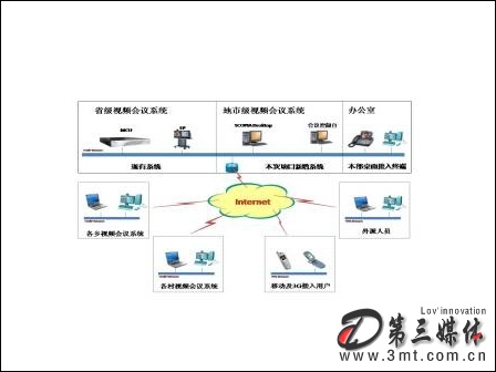 此外,為保證外出領(lǐng)導(dǎo)或員工不會錯過任何一次重要會議,該套系統(tǒng)需要支持與普通電話、手機等語音終端的實時接入,而專網(wǎng)外計算機桌面終端地接入,可保證外出的干部能夠通過普通計算機參加重要會議或培訓(xùn)。該平臺還要能夠通過升級支持3G技術(shù)的接入,從而使整套系統(tǒng)能夠順應(yīng)未來通訊技術(shù)的發(fā)展。