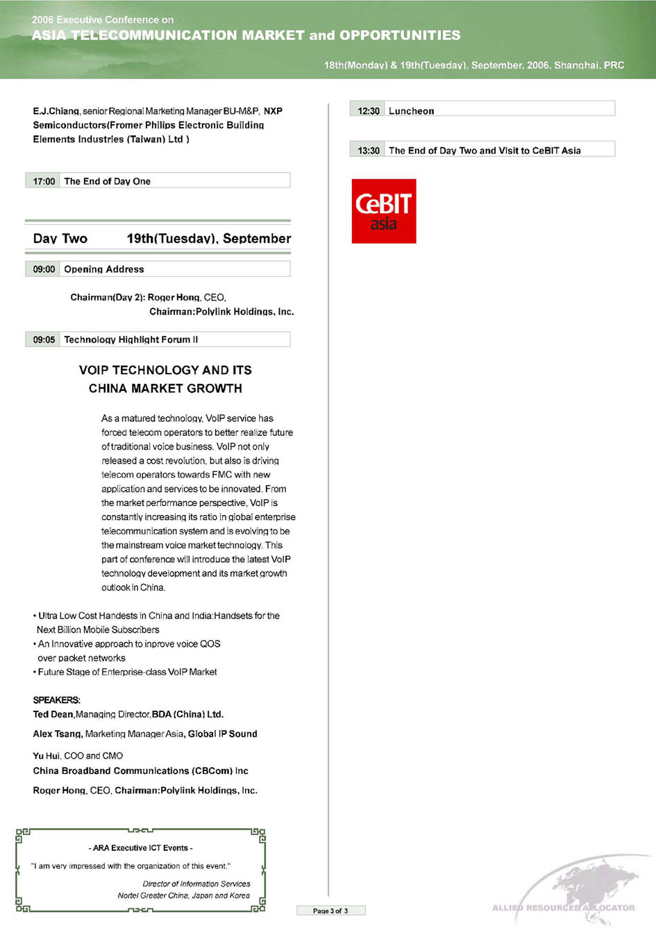 Polylink總裁應(yīng)邀擔(dān)任2006亞洲CeBIT“VoIP技術(shù)以及亞洲市場發(fā)展?fàn)顩r”論壇主席