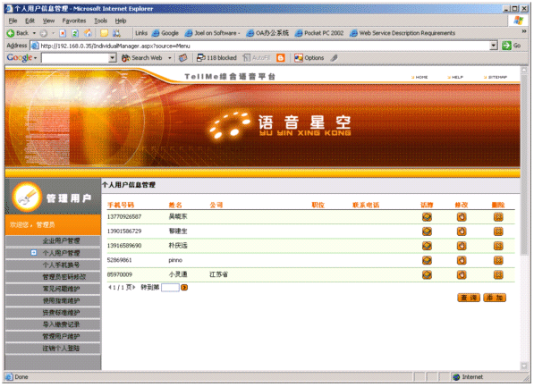 提供企業(yè)電話簿管理界面。企業(yè)通過電話簿管理界面對電話簿記錄和功能進(jìn)行修改、增加、設(shè)定等管理。