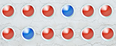 某一個(gè)呼叫中心,在它廁所上頭,裝了這樣一個(gè)裝置。這裝置如下面的圖所示,有12個(gè)燈號(hào),燈號(hào)有兩種顏色,一種是紅色,一種是藍(lán)色,有時(shí)會(huì)變成紅色,有時(shí)又會(huì)變成藍(lán)色。