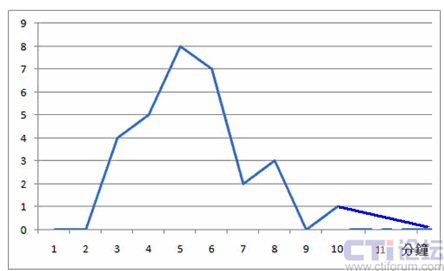 在下面這張圖中,我們看到大部分人的平均處理時長是5分鐘左右,但在8分鐘這里,又出現(xiàn)了一個小高峰,甚至在10分鐘這里,出現(xiàn)了第三個小小高峰。