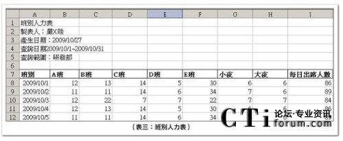 與分時(shí)人力表極為相似,但此報(bào)表顯示的是當(dāng)天每個(gè)班別的表定出席人數(shù),通常是在計(jì)算津貼或是特殊事件(Ex:大夜班座席員數(shù)量)時(shí)使用,唯因現(xiàn)場管理或班務(wù)調(diào)度之需,可能會(huì)拖動(dòng)班表造成座席員表定班別之實(shí)際上下班時(shí)間與原始班別設(shè)計(jì)之起訖時(shí)間不同,管理人員需特別注意。