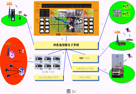 消息隊(duì)列服務(wù)器采用國(guó)際領(lǐng)先的計(jì)算機(jī)支持的協(xié)同技術(shù)進(jìn)行設(shè)計(jì)開發(fā),實(shí)現(xiàn)三臺(tái)合一指揮調(diào)度系統(tǒng)眾多子系統(tǒng)間的無縫集成,包括數(shù)據(jù)流(包括信令)的集成、工作流的集成、應(yīng)用的集成、信息的集成、語音鏈路的集成。它是好易通科技三臺(tái)合一指揮調(diào)度系統(tǒng)所有子系統(tǒng)之間進(jìn)行TCP/IP消息傳遞的中轉(zhuǎn)站,負(fù)責(zé)消息的分發(fā)和系統(tǒng)協(xié)同功能。它提供了接處警座席子系統(tǒng)、GIS警用地理信息子系統(tǒng)、集群通信系統(tǒng)、GPS衛(wèi)星定位子系統(tǒng)、視頻監(jiān)控子系統(tǒng)、大屏幕顯示子系統(tǒng)、應(yīng)急通信車子系統(tǒng)、綜合信息查詢子系統(tǒng)之間相互數(shù)據(jù)通信的接口,如圖1所示。