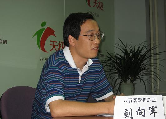 劉向軍:一個公司的名稱一定有它的含義。當時創(chuàng)業(yè)的時候來講,這個名字意思很多。其中很重要的就是一個理念。當時對未來市場的評估看不太清楚,但是對一個提供在線托管服務廠商,單位廠商認為至少要到八百個客戶。所以八百客具有八百個客戶的意思。當然還有其他的意思,F(xiàn)在八百客經(jīng)過這么兩年的時間,無論從產(chǎn)品技術(shù),還是從客戶的現(xiàn)在擁有量,還是在市場影響層面,已經(jīng)站住腳跟。當然一個行業(yè)的發(fā)展,這種趨勢越來越快。
