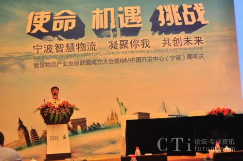 CTI論壇(ctiforum)6月15日消息(記者 歐陽(yáng)): 6月12日,“智慧物流產(chǎn)業(yè)發(fā)展聯(lián)盟成立大會(huì)”在寧波召開(kāi),寧波市副市長(zhǎng)陳仲朝、寧波市政府副秘書(shū)長(zhǎng)陳炳榮、寧波市科技局黨組書(shū)記、局長(zhǎng)黃利、寧波國(guó)家高新區(qū)管委會(huì)主任王海國(guó)、IBM全球副總裁兼中國(guó)開(kāi)發(fā)中心總經(jīng)理王陽(yáng)、八百客副總裁李淼等出席此次大會(huì)。