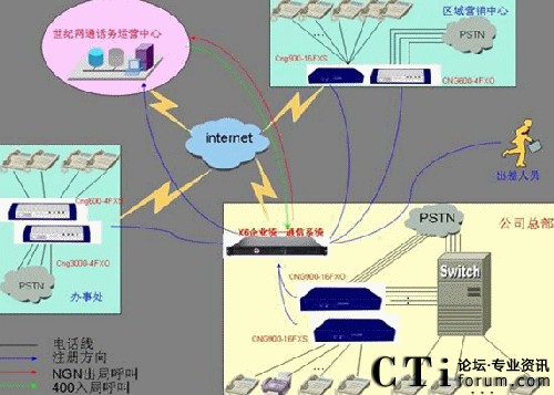 總部現(xiàn)在使用的為傳統(tǒng)PBX設(shè)備,配置為50路外線和200內(nèi)線,分機(jī)為8前綴4位的分機(jī)號(hào)碼,如8001分機(jī)。32個(gè)的辦事處使用電信匯線通或直接的PSTN線路,2個(gè)的區(qū)域營(yíng)銷中心使用匯線通或直接的PSTN線路,2個(gè)分公司使用的小型PBX?偛磕壳吧暾(qǐng)了4條2M的ADSL線路做為一個(gè)集合,沒(méi)有固定的IP地址,各個(gè)分公司也多使用ADSL上網(wǎng)或電信的小區(qū)寬帶上網(wǎng)。