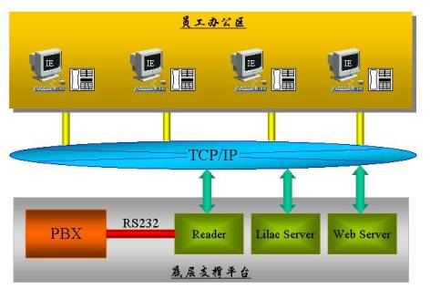 系統(tǒng)構(gòu)造基于Web/Brower方式,每個員工端無需安裝任何軟件,只需通過啟動IE,輸入您的分機號便可方便地選擇自己當天的工作位置。