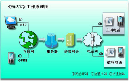 具體來講就是在手機里安裝“暢話寶”應(yīng)用軟件(在計算機桌面提供web客戶端),該軟件帶有通信錄和觸發(fā)GPRS的功能,可以通過無線互聯(lián)網(wǎng)將電話號碼發(fā)送到平臺,通過PSTN發(fā)起通話(2方或多方)。這個手機客戶端軟件,可無縫對接到固網(wǎng)增值業(yè)務(wù)平臺上(多方通信平臺)?蛻舳塑浖陨頂y帶有通信錄功能,調(diào)用方便。部分機型可調(diào)用手機本身的通信錄。