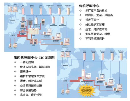 在網(wǎng)絡(luò)層實現(xiàn)三網(wǎng)合一網(wǎng)絡(luò)融合的基礎(chǔ)上,當今企業(yè)迫切需要在業(yè)務(wù)應(yīng)用層實現(xiàn)“一體化”的融合通訊。第四代呼叫中心CIC技術(shù)帶來新一代的客戶服務(wù)理念,全面支持企業(yè)客戶的多媒體接入,給企業(yè)和機構(gòu)帶 來更靈活的度身定制和柔韌性,更重要的是,它代表最新技術(shù)的發(fā)展趨勢,全新的技術(shù)構(gòu)架將為未來的升級發(fā)展留出廣闊的空間。