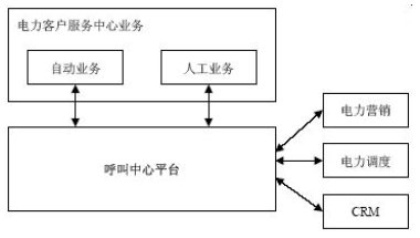 電力客戶服務(wù)中心整體結(jié)構(gòu)根據(jù)呼叫中心方案設(shè)計,采用呼叫中心平臺系統(tǒng)為客服平臺,在平臺上開發(fā)電力自動業(yè)務(wù)和人工業(yè)務(wù)系統(tǒng);并且利用呼叫中心系統(tǒng)平臺的互連互通能力跟其他電力相關(guān)軟件系統(tǒng)對接,如后臺電力營銷子系統(tǒng),電力管理系統(tǒng),電力調(diào)度,電力網(wǎng)管,客戶關(guān)系管理子系統(tǒng)等等。