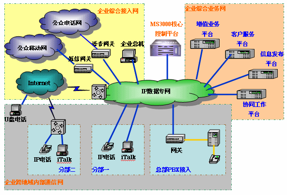 單一的電話通信方式已經(jīng)遠遠不能滿足現(xiàn)代企業(yè)(包括行業(yè)、政府機關)在通信方面的需求,隨著IP網(wǎng)絡的不斷普及、新的通信技術的不斷發(fā)展,“多媒體協(xié)同通信”一個新的通信概念已經(jīng)展現(xiàn)在我們的面前。我們需要跨地域的內(nèi)部電話,我們需要廉價的IP長途,我們同樣需要通信服務平臺、信息發(fā)布平臺,我們還需要工作協(xié)同、信息共享。“多媒體協(xié)同通信”就能滿足我們這些需要。