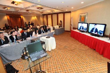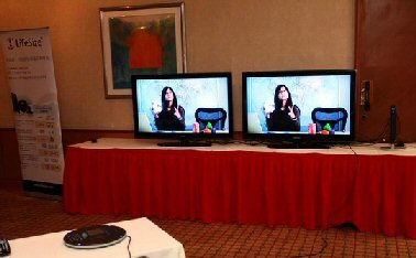 為了更好地展示新一代視頻系統(tǒng),LifeSize公司現(xiàn)場(chǎng)接通了美國(guó)總部的視頻會(huì)議畫(huà)面,畫(huà)面逼真流暢。LifeSize公司創(chuàng)始人、首席執(zhí)行官Craig