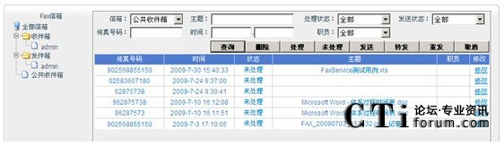 網(wǎng)絡(luò)傳真是指通過互聯(lián)網(wǎng)發(fā)送和接收傳真,無需硬件傳真機就可以隨時隨地和世界上任何一臺傳真機之間收發(fā)圖像清晰的傳真。使用PCS網(wǎng)絡(luò)傳真軟件,只需要提供支持SIP或者H323、支持T38協(xié)議的PBX。配合PCS的虛擬傳真打印驅(qū)動程序,您只須將你要發(fā)送的文檔或者圖片進行打印操作就可以完成發(fā)送傳真任務(wù),方便快捷!本系統(tǒng)提供Web方式的傳真管理功能,可以進行統(tǒng)計、查詢、下載、發(fā)送、轉(zhuǎn)發(fā)、重發(fā)和刪除傳真。您再也不會有墨粉不足、缺紙、卡紙、傳真圖像不清晰等煩惱!