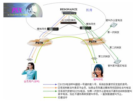 2. 一號通:軟交換實現(xiàn)的對來自PSTN的呼叫提供一號通功能,電話可連續(xù)呼轉(zhuǎn)至5個不同的號碼;