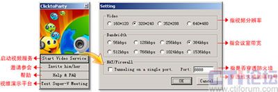 Video Service按鈕,對方就可以在聊天窗口中收到邀請信息,點擊“接受”按鈕后雙方自動啟動并進(jìn)入Clicktoparty軟件的主界面。您還可以以同樣的操作步驟,陸續(xù)邀請其他好友或聯(lián)系人加入,之后就可以享受Clicktoparty帶給您的強(qiáng)大功能和美好體驗,包括專業(yè)級的音視頻實時溝通、多人文字交流及私聊、桌面共享及遠(yuǎn)程協(xié)助、高速的文件傳輸、各種文檔的在線演示和討論等。
