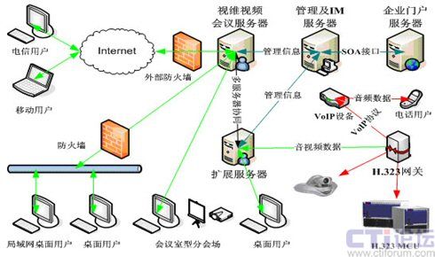 視維系統(tǒng)可以支持分布式視頻服務(wù)器集群,可利用企業(yè)內(nèi)部網(wǎng)絡(luò)或者互聯(lián)網(wǎng)構(gòu)建超大規(guī)模企業(yè)綜合通訊平臺,參考如下典型拓?fù)浣Y(jié)構(gòu):
