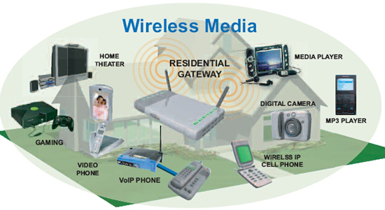 在家中傳送廣播質(zhì)量的視頻將需要住宅網(wǎng)關(guān)整合多種有線和無線技術(shù)、安全特性和服務(wù)質(zhì)量(QoS)能力。住宅網(wǎng)關(guān)需要支持最新的無線連網(wǎng)技術(shù),例如目前的802.11g以及暫露頭角的802.11n、802.11d/e和802.11r標(biāo)準(zhǔn)。多種有線家庭連網(wǎng)技術(shù)也在考慮之內(nèi),所以住宅網(wǎng)關(guān)應(yīng)能支持以太網(wǎng)、同軸電纜多媒體聯(lián)盟(MOCA)、家用電話線網(wǎng)絡(luò)聯(lián)盟(HPNA)、家庭插電聯(lián)盟(HPPA)和通用電力線協(xié)會(huì)(UPA)等機(jī)構(gòu)推出的有線家庭聯(lián)網(wǎng)技術(shù)。