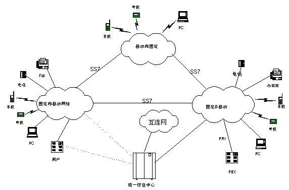 這是一種使用戶具有單一一個電話號碼,各種服務(wù)可只對這個號碼,用戶也可只通過這個號碼管理他們的通信要求的方法。
