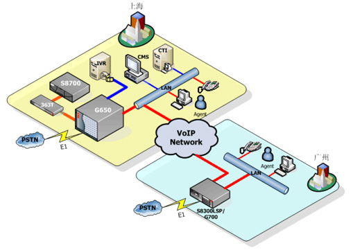 為了進一步拓展中國市場,并且針對某些特定的地方需要提供本地化方言服務,S公司需要在廣州設立一個新的座席集群,座席數(shù)量在50左右,需要擁有與中心點一樣完善的功能,實現(xiàn)呼叫的自由分配,共享中心點設施,比如CMS(呼叫中心報表系統(tǒng))、IVR(交互式語音應答系統(tǒng))和CDR(呼叫詳細記錄)等等。并提供最強的穩(wěn)定性和冗余備份功能。