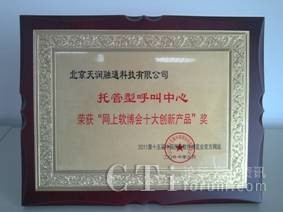 為了樹立軟件行業(yè)創(chuàng)新業(yè)務(wù)的典范,分享不同企業(yè)的軟件發(fā)展成果,本次大會通過官網(wǎng)的產(chǎn)品展示,用戶體驗投票和軟博會專家顧問團評選的方式,評選出了的“軟博會十大創(chuàng)新產(chǎn)品”獎。北京天潤融通科技有限公司的“托管型呼叫中心服務(wù)”,以其在呼叫中心鄰域內(nèi)創(chuàng)新的saas業(yè)務(wù)模式,簡單、易用、可依靠的服務(wù)特色,獲此殊榮。
