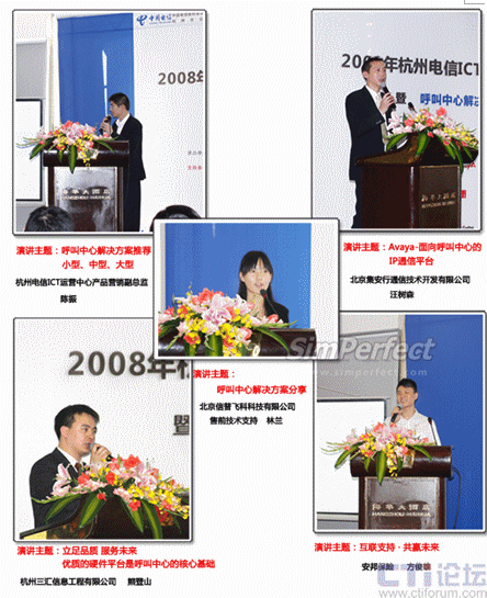 11月4日,北京信普飛科、上海羅盤、集安行、杭州三匯、杭州領(lǐng)先、思安華勝、七星藍(lán)圖、康達(dá)特等公司攜手 杭州電信 共同舉辦的2008杭州電信ICT運(yùn)營中心技術(shù)交流會,暨呼叫中心解決方案推薦會在杭州海華大酒店如期舉行。