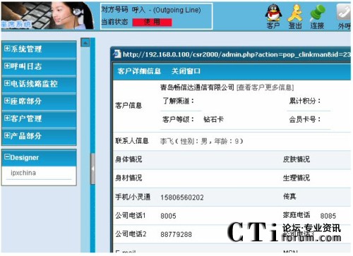 作為呼叫中心的核心功能,來電彈屏功能在客戶和服務(wù)代表之間建立了溝通的橋梁。當(dāng)電話接入客服代表電話振鈴的同時(shí),電腦屏幕會(huì)彈出客戶的相關(guān)資料。如果是新客戶,則彈出空白頁面,客服代表可以說歡迎的同時(shí)錄入客戶資料,以備客戶下次來電時(shí)查詢。當(dāng)客戶在網(wǎng)上選購產(chǎn)品時(shí),有問題可以隨時(shí)打電話溝通,來時(shí)的同時(shí),座席電腦上彈出客戶已經(jīng)填寫的資料,座席對(duì)客戶的資料一目了然,提高了工作效率。來電彈屏的頁面可以根據(jù)用記要求定制。