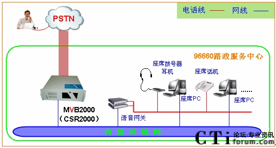 局域網(wǎng)+呼叫中心服務(wù)器(含MVB2000交換系統(tǒng)、CSR2000業(yè)務(wù)系統(tǒng)與模擬語(yǔ)音接口卡)+語(yǔ)音網(wǎng)關(guān)(S口)+座席話機(jī)(或者撥號(hào)器耳機(jī))+座席PC;