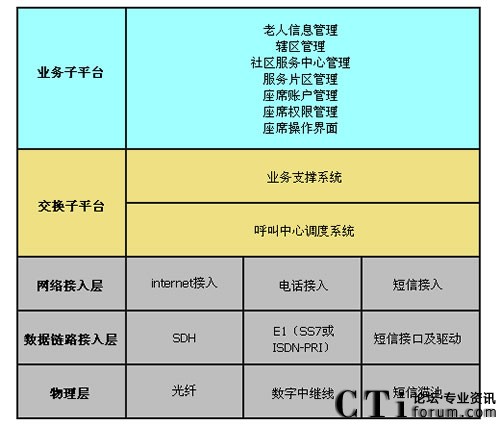 根據(jù)社區(qū)內(nèi)老人的情況,為加入社區(qū)呼叫系統(tǒng)(以下簡稱入網(wǎng))的老人發(fā)放老人專用手機(jī),并將采集到的老人檔案信息上傳于系統(tǒng)內(nèi)。當(dāng)老人通過手機(jī)固定一個(gè)撥號(hào)鍵撥打“服務(wù)中心服務(wù)統(tǒng)一電話號(hào)碼”時(shí),社區(qū)呼叫平臺(tái)根據(jù)老人所在位置將來電直接轉(zhuǎn)給對(duì)應(yīng)社區(qū)服務(wù)中心,社區(qū)服務(wù)中心的座席電腦上就會(huì)彈出老人信息(包括:名字、地址、聯(lián)系電話、兒女親屬電話、所在街道的社區(qū)、有無病史、歷史需求記錄等等)。