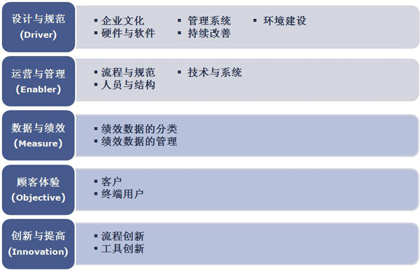 呼叫中心能力成熟度認證涉及設計與規(guī)范、運營與管理、數(shù)據(jù)與績效、顧客體驗、創(chuàng)新與提高5大類,14項評審指標以及若干個值得關注的管理項目。是一套完整的“客戶為中心”的績效管理工具。