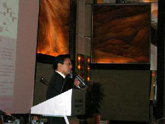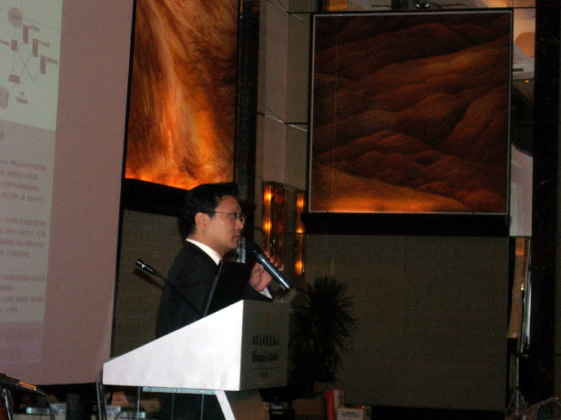。。2005年8月24日,3Com NBX語音通訊產(chǎn)品推廣會(huì)于北京香格里拉大酒店成功舉辦。圖為3Com中國地區(qū)高級市場經(jīng)理朱海翔闡述3Com產(chǎn)品與市場(點(diǎn)擊察看大圖)