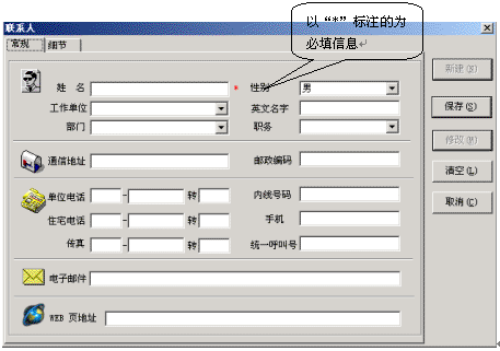 在地址簿中按鼠標(biāo)右鍵,在彈出的菜單中選擇“新鍵地址簿記錄”選項(xiàng),就會(huì)彈出新建聯(lián)系人對(duì)話框,在這里添入相應(yīng)的內(nèi)容,您的一個(gè)新用戶通訊錄就建立完畢了。