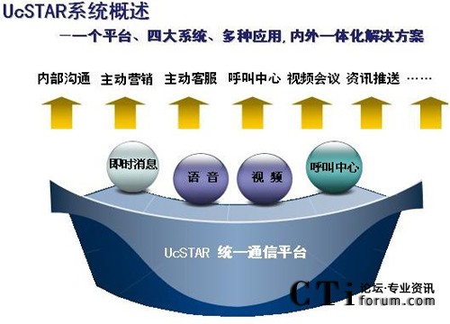 UcSTAR統(tǒng)一通信平臺是為企業(yè)提供從內(nèi)部溝通、協(xié)作與外部服務(wù)于一體的高效通信通道,并與企業(yè)的業(yè)務(wù)系統(tǒng)融合,實現(xiàn)統(tǒng)一通訊、統(tǒng)一登錄、統(tǒng)一消息、統(tǒng)一門戶的統(tǒng)一工作平臺。