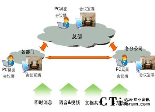 同時支持語音、視頻、文本通信及文檔共享、桌面共享、白板操作、網頁共享等協(xié)用手段