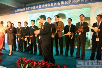 4月21日,江蘇信息服務產(chǎn)業(yè)基地暨揚州市服務業(yè)集聚區(qū)和服務業(yè)項目推介洽談會在江蘇信息服務產(chǎn)業(yè)基地(揚州)隆重召開,省信息產(chǎn)業(yè)廳副廳長龔懷進、揚州市委常委、常務副市長張京霞為省信息安全技術中心揭牌,中國網(wǎng)通集團公司總工程師滕勇,神州數(shù)碼高級副總裁陳勇,上海萬得信息股份董事長陸風等數(shù)十位集團公司老總現(xiàn)場祝賀,同時IBM、AVAYA、優(yōu)勝資訊、神州數(shù)碼等60多家企業(yè)現(xiàn)場簽定了投資合作協(xié)議,而華潤通信、中國電信、酒店無憂、漢世紀等10家企業(yè)則從廣陵區(qū)委書記孔令俊手中接過了入駐金鑰匙,成為首批入駐江蘇信息服務產(chǎn)業(yè)基地的企業(yè),至此江蘇信息服務產(chǎn)業(yè)基地迎來首發(fā)項目招商的“開門紅”,江蘇信息服務產(chǎn)業(yè)基地也因此被業(yè)界冠以中國首家專業(yè)定位信息呼叫和數(shù)據(jù)處理產(chǎn)業(yè)的“中國聲谷”的美譽。 “江蘇信息服務產(chǎn)業(yè)基地(揚州)”位于廣陵新城內(nèi),為省信息產(chǎn)業(yè)廳與揚州市政府聯(lián)手打造的中國首家專業(yè)定位于呼叫信息和數(shù)據(jù)處理產(chǎn)業(yè)的省級信息服務業(yè)基地,占地2.52平方公里,總投資50億元,處于揚州ECBD核心區(qū)域,交通便捷,區(qū)位優(yōu)勢獨特,生態(tài)環(huán)境優(yōu)美;匕凑铡爱a(chǎn)業(yè)社區(qū)”的標準和“商務公園”的理念規(guī)劃建設,重點發(fā)展信息服務產(chǎn)業(yè)及具有揚州特色的城市信息化應用軟件和嵌入式軟件產(chǎn)業(yè),立足長三角、面向全國、服務世界,逐步發(fā)展成為全國乃至世界呼叫中心產(chǎn)業(yè)最佳實踐基地、全國生產(chǎn)性服務業(yè)的標桿示范基地及呼叫中心人才培訓與派遣基地。