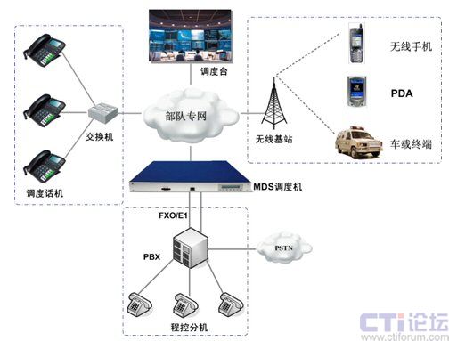 在調(diào)度終端方面,室內(nèi)可以采用調(diào)度話機(jī),包括既有的傳統(tǒng)電話分機(jī);室外主要分為人員和裝備,移動(dòng)人員可以采用專用PDA登錄到系統(tǒng)中,實(shí)現(xiàn)調(diào)度作業(yè)與單呼、群呼;車輛裝備可以安裝車載終端實(shí)現(xiàn)調(diào)度指令的接收和語音通信。