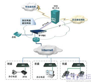 采用NGN+IP PBX的解決方案,不僅可以增強(qiáng)IP PBX組網(wǎng)和業(yè)務(wù)通信能力,還可以配合運(yùn)營(yíng)商的NGN平臺(tái)開(kāi)拓多種業(yè)務(wù)模式,成為NGN的有效擴(kuò)展,為運(yùn)營(yíng)商和最終用戶(hù)提供雙贏的有利協(xié)助;窗簿W(wǎng)通就采用了Zed-3(捷思銳科技)的IP PBX進(jìn)行大客戶(hù)的語(yǔ)音接入。該IP PBX主要提供了用戶(hù)分機(jī)號(hào)碼分配功能,并為用戶(hù)提供語(yǔ)音池(IVR)、語(yǔ)音信箱、保密呼叫、NGN業(yè)務(wù)接入等多種應(yīng)用服務(wù)。