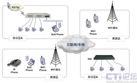 隨著北京西南物流中心業(yè)務(wù)的不斷發(fā)展,其庫區(qū)在不斷落成,倉儲面積仍不斷擴(kuò)大。由于各個庫區(qū)及辦公樓都具有無線Mesh網(wǎng)絡(luò)覆蓋,西南物流中心在現(xiàn)有無線網(wǎng)絡(luò)基礎(chǔ)上陸續(xù)開展企業(yè)信息化業(yè)務(wù)。由于各個庫房與辦公樓之間都有一定距離,因為在中心的通信成本構(gòu)成中,內(nèi)部業(yè)務(wù)部門之間的溝通占據(jù)了絕對的比重,經(jīng)常居高不下的通信成本嚴(yán)重制約了北京西南物流中心業(yè)務(wù)的發(fā)展,于是,現(xiàn)實的溝通需求與高昂的通信成本之間的矛盾開始凸現(xiàn),內(nèi)部語音通信就成為了西南物流中心需要解決的首要任務(wù)之一。