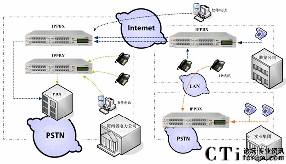 · “騰龍公司”需要組建內(nèi)部電話網(wǎng),并且可以與“河南電力”進(jìn)行VoIP通話。可以進(jìn)行電話會(huì)議;