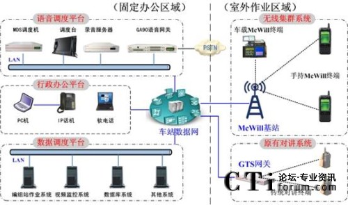 無線集群子系統(tǒng):便于車站一線作業(yè)人員通過無線網(wǎng)絡(luò),在移動工作狀態(tài)下進行數(shù)據(jù)和語音的通信。通過使用無線寬帶智能終端,可以實現(xiàn)視頻和圖像的采集,以及語音通話。該系統(tǒng)還能夠擴展到對人員和車輛進行定位,以及通過視頻監(jiān)控系統(tǒng),看到每個人員和車輛的作業(yè)動態(tài);