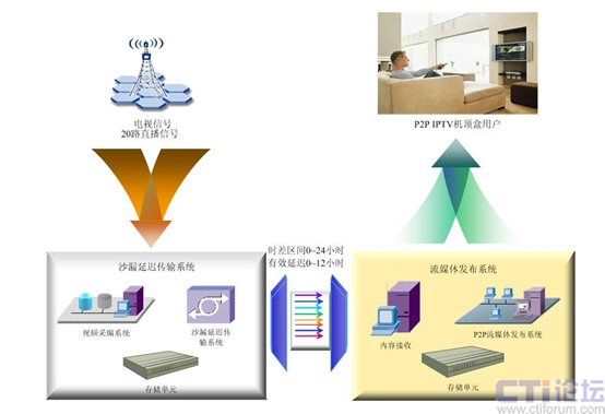 - 延遲時間自由設(shè)置。根據(jù)國家之間時差的不同,傳輸延遲時間可以設(shè)置從3分鐘到24小時的任意時長,真正實現(xiàn)時移電視。