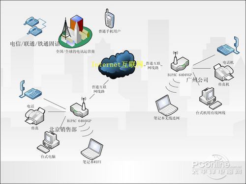 BiPAC 6404VGP其實(shí)就是一個VoIP語音網(wǎng)關(guān),VoIP就是一種把語音信號轉(zhuǎn)換成在網(wǎng)絡(luò)上傳輸?shù)臄?shù)字信號的技術(shù),它的應(yīng)用已經(jīng)非常成熟,我們經(jīng)常使用的QQ語音聊天功能也就是VoIP的一種表現(xiàn)形式。在所有大型跨國企業(yè)里我們幾乎都能看到VoIP技術(shù)的身影,這是因?yàn)殡娦胚\(yùn)營商的長途電話費(fèi)一般都不便宜,而我們企業(yè)的網(wǎng)絡(luò)使用費(fèi)一般又是包月的,通過無限包月的網(wǎng)絡(luò)打免費(fèi)的國際國內(nèi)長途電話不就是占電信的便宜嘛?