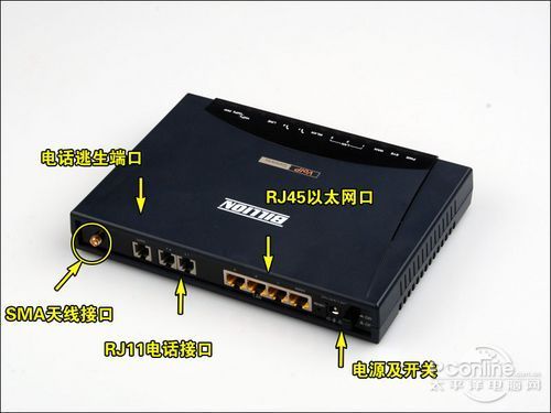 BiPAC 6404VGP后面接口板除了和普通無線路由器一樣有1個WAN接口,4個LAN接口外,還多出了三個RJ11的電話接口,這個就是用來連接傳真機(jī)或電話機(jī)的。此外,考慮到BiPAC 6404VGP的無線功能在企業(yè)中應(yīng)用需要有較大的信號覆蓋范圍,所以它還提供了一個SMA天線接口可用來連接高增益天線。
