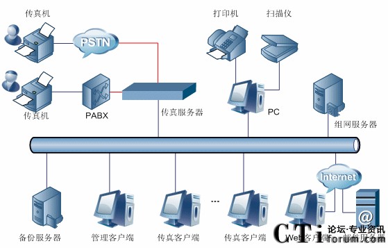 以下是三匯傳真服務器系統結構圖。