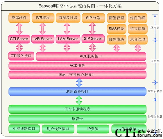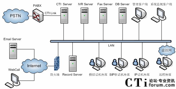 圖2-3 EasyCall聯(lián)絡(luò)中心系統(tǒng)結(jié)構(gòu)圖-一體化方案