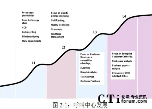 在現(xiàn)實(shí)中,還存在零程度的呼叫中心,這一點(diǎn)并沒有體現(xiàn)在呼叫中心發(fā)展路線圖上。零程度的呼叫中心就是那些在運(yùn)營(yíng)過程中并沒有很好地認(rèn)識(shí)到自己角色以及對(duì)自己未來的發(fā)展毫無計(jì)劃的呼叫中心。