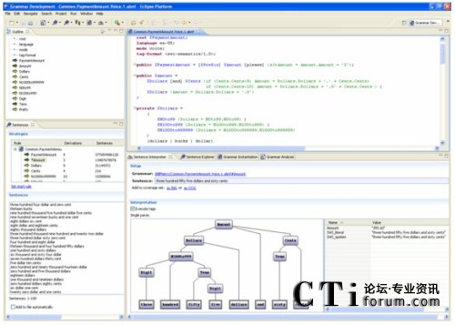 這里強(qiáng)調(diào)的Eclipse插件,除了本身作為優(yōu)秀工具,還提供了附加于Eclipse工作臺內(nèi)的順暢互操作性:你可以一邊看著對應(yīng)呼叫者輸入的對話流程,一邊檢查和完成語音識別語法;你也可以一邊構(gòu)建連接后臺的Web服務(wù)代碼,一邊通過簡單地拖放來調(diào)整應(yīng)用邏輯。開發(fā)者首次擁有了對所有應(yīng)用方面的同時控制,無須在不同IDE之間進(jìn)行切換,或者在選擇單一環(huán)境時在特性上的折衷。